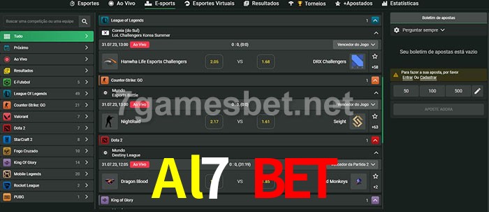 O Al7 Bet oferece uma grande seleção de opções de apostas em e-sports com probabilidades competitivas